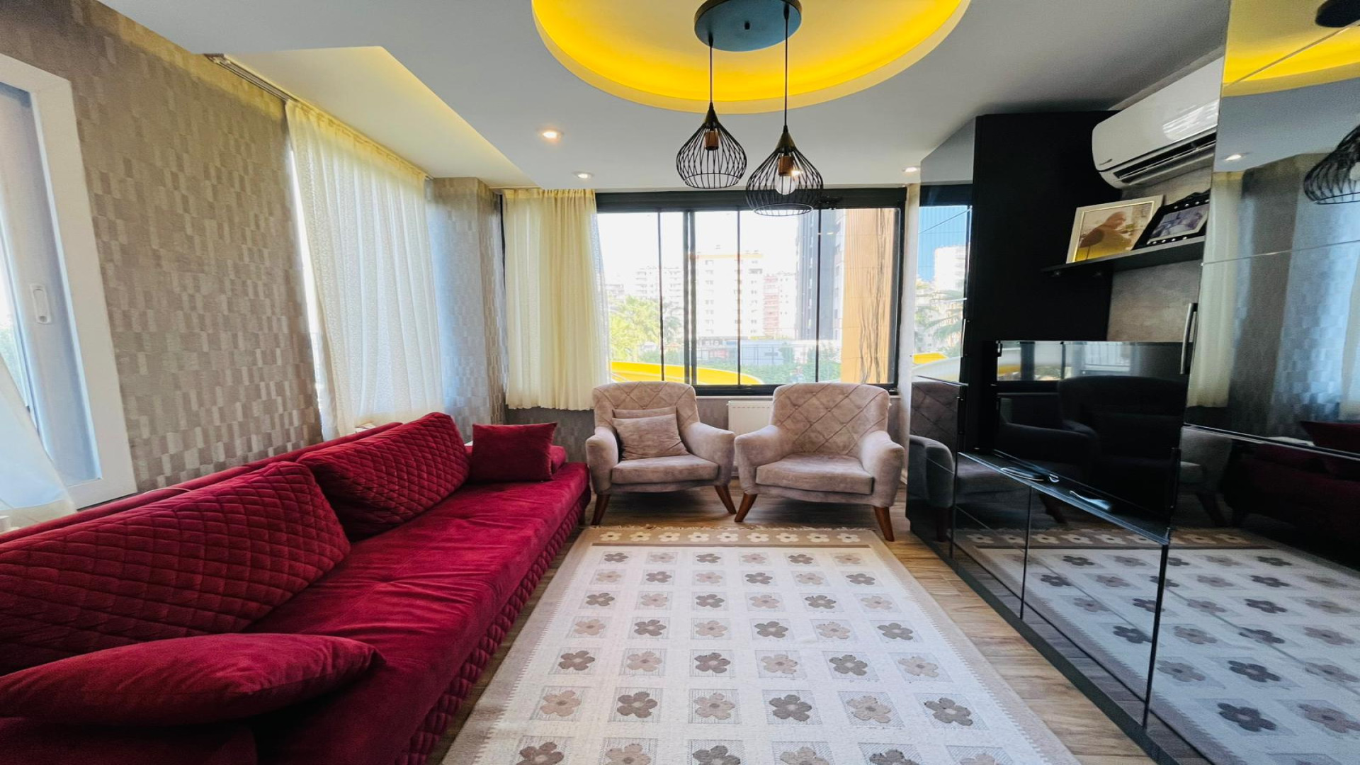 In der Akdeniz Mahallesi in Mezitli befindet sich diese 1+1 Wohnung mit 58 m² Bruttofläche (50 m² netto) im 4. Stock eines 14-stöckigen Gebäudes. Südlage. Heizsystem: Erdgas-Kombi. Neubau. Hamam und Sauna vorhanden.