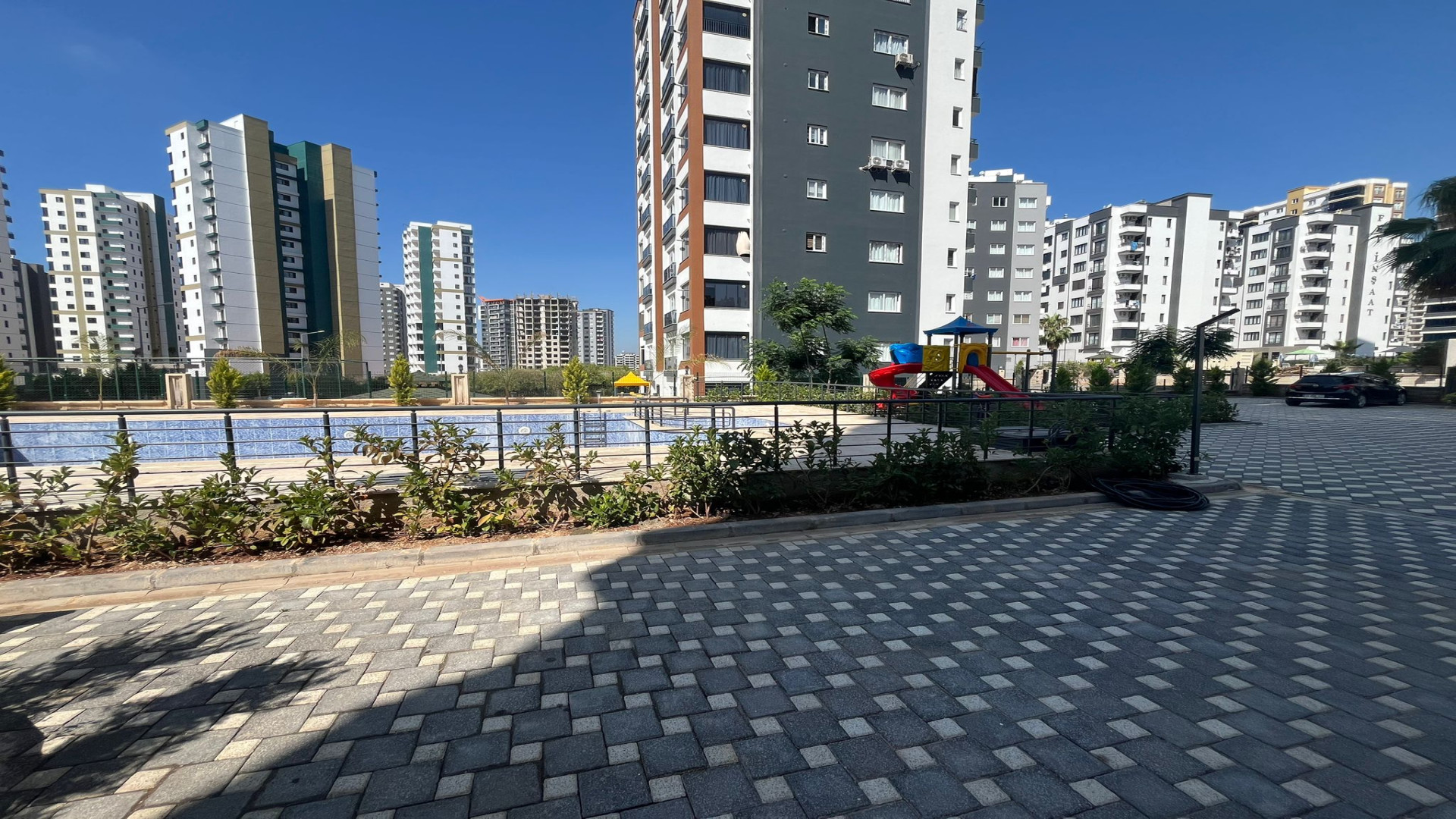 In der Akdeniz Mahallesi in Mezitli befindet sich diese 3+1 Wohnung mit 110 m² Bruttofläche (100 m² netto) im 5. Stock eines 14-stöckigen Gebäudes. Ausrichtung nach Westen, Süden und Norden. Heizsystem: Erdgas-Kombi. In der Anlage gibt es ein Freibad und einen Kinderspielplatz. Die monatliche Gebühr beträgt 750 TL.